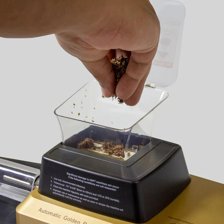 Kann ich den HSPT Golden Rainbow zum Drehen anderer Tabaksorten oder Rauchwaren verwenden? Nein, die HSPT Golden Rainbow ist ein feuchtigkeitskontrolliertes Produkt, das speziell für die Verwendung mit Zigarettentabak entwickelt wurde.